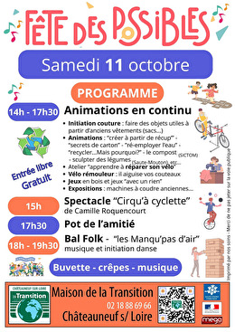 La fête des possibles revient en 2025 à Châteauneuf sur Loire le samedi 11 octobre à partir de 14h sous la halle Saint Pierre