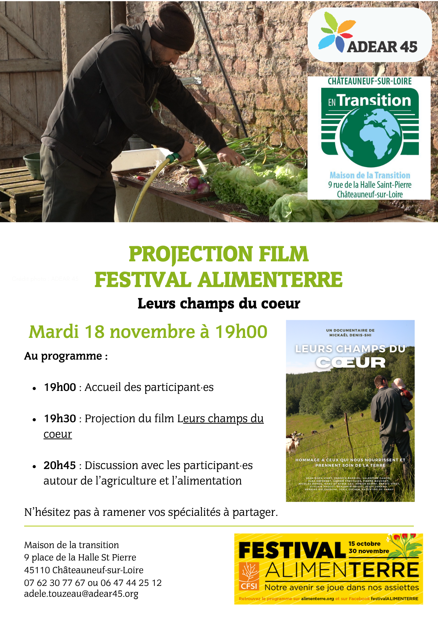 Dans le cadre du Festival Alimenterre, l’ADEAR 45 et CSLT organise la projection du film « Leurs champs du coeur » le mardi 18 novembre 2025 à 19h.